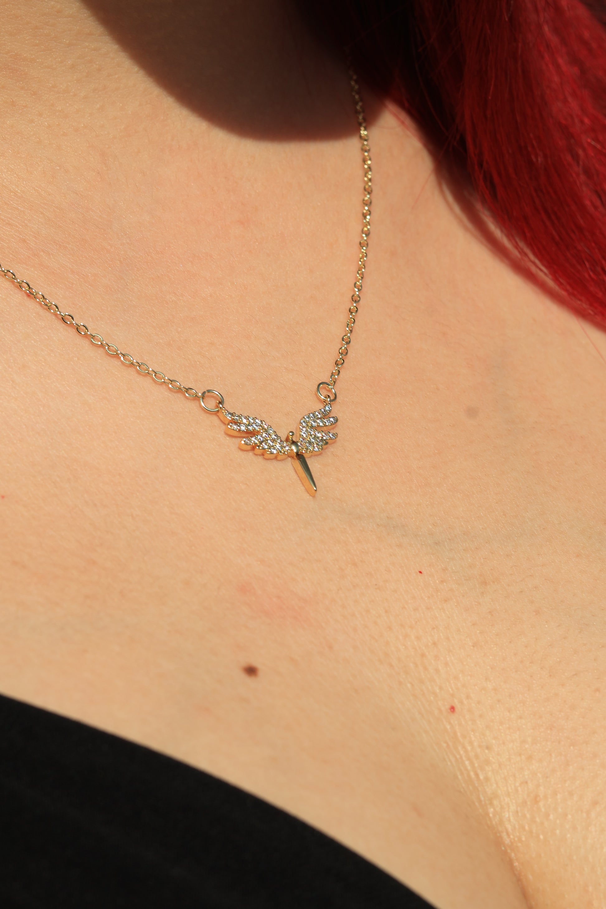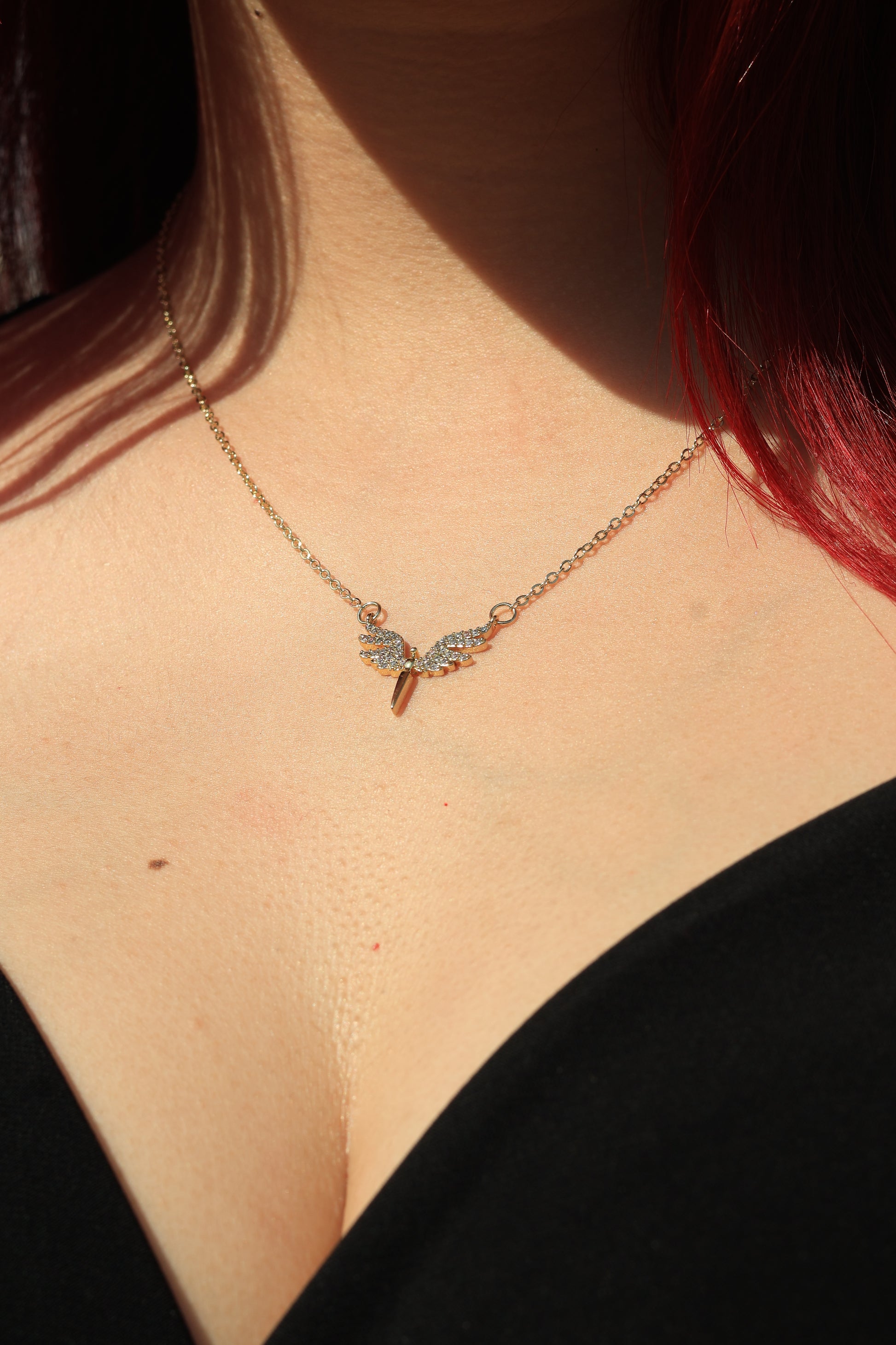 Bu özel 14 Ayar Altın Kaplama Melek Kanadı Kolye, zarafetin ve koruyucu enerjinin sembolü olarak tasarlandı. Her detayı, ışıltılı zirkon taşının kusursuz parlaklığıyla birleşerek zamansız bir şıklık sunar.