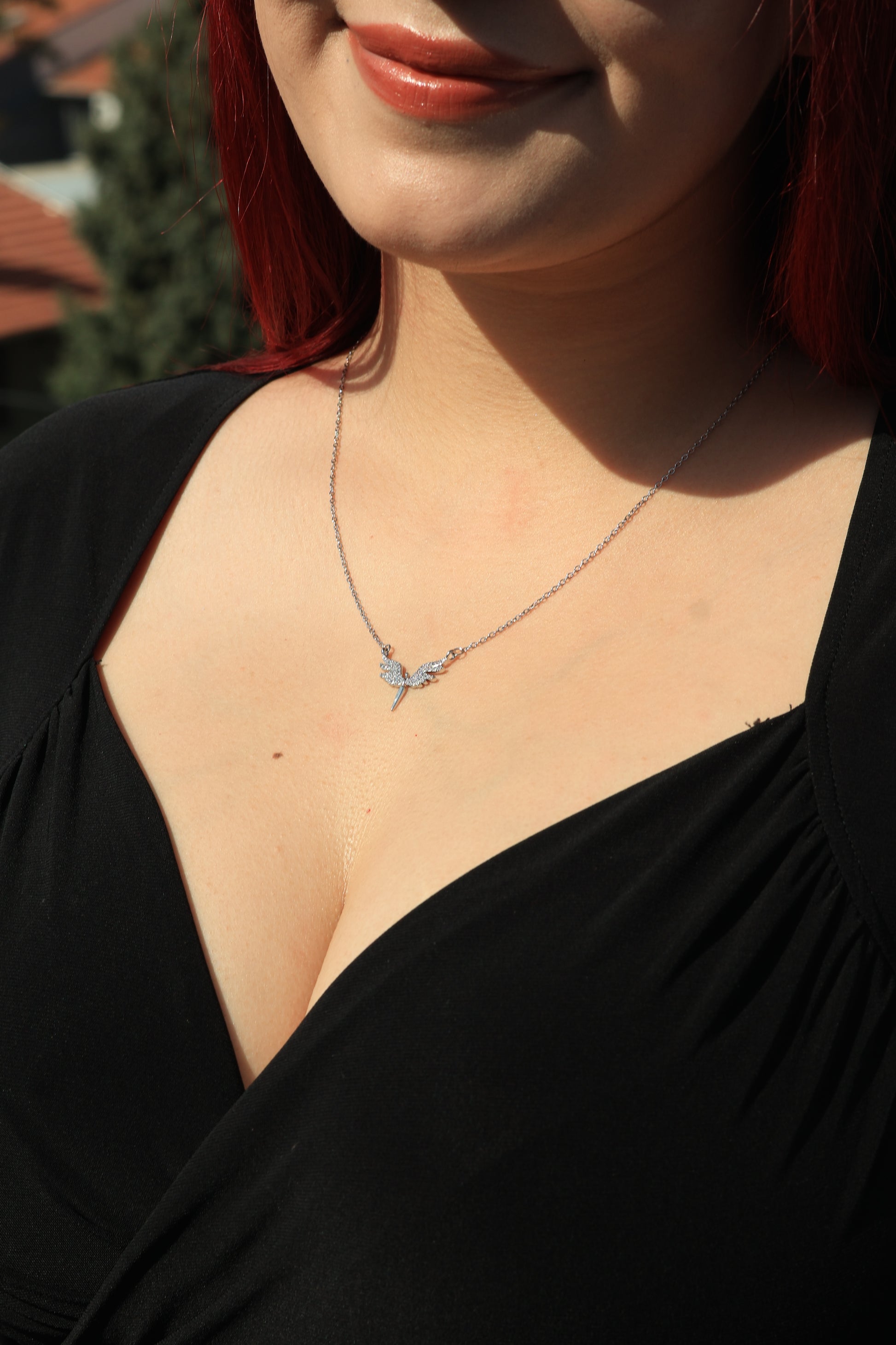 Zarafetin ve anlamın birleştiği bu özel kolye, melek kanadı figürüyle sevginin, koruyuculuğun ve saf duyguların sembolüdür.